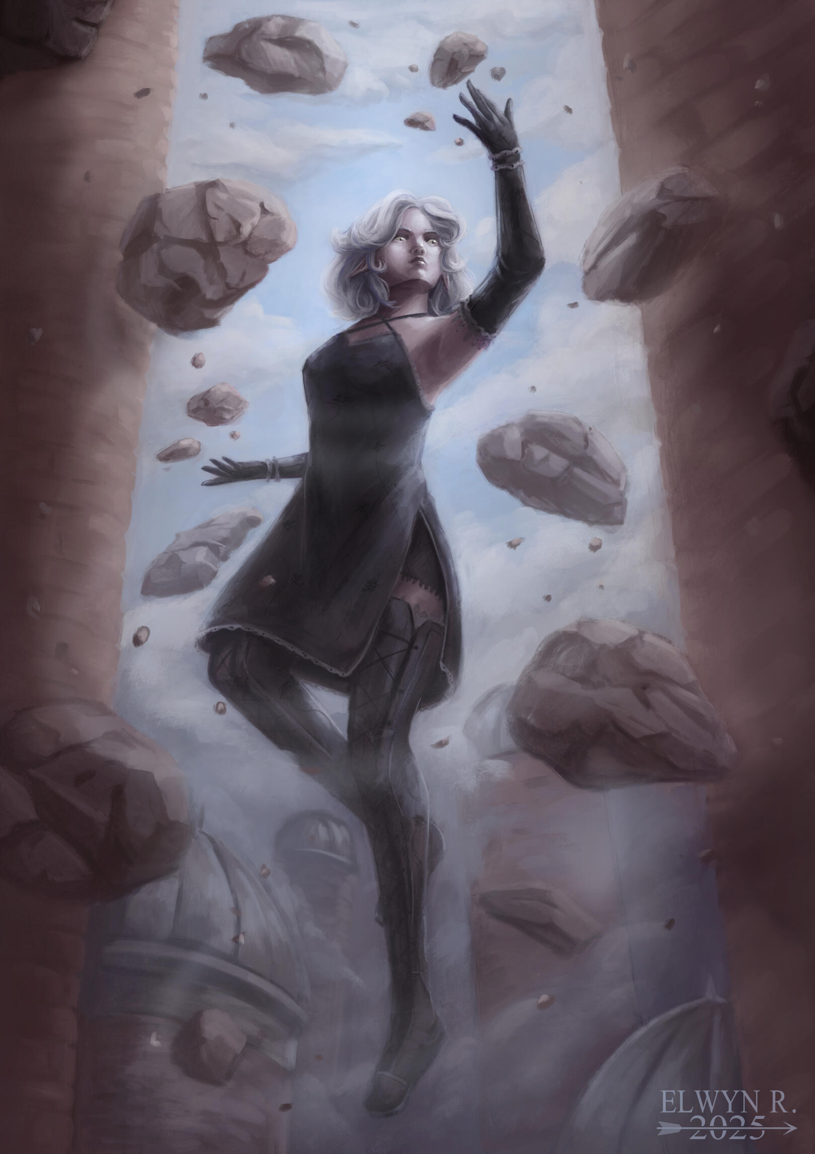 This artwork was created for a private client. It showcases one of the main characters from their writing project, who has telekinetic powers.