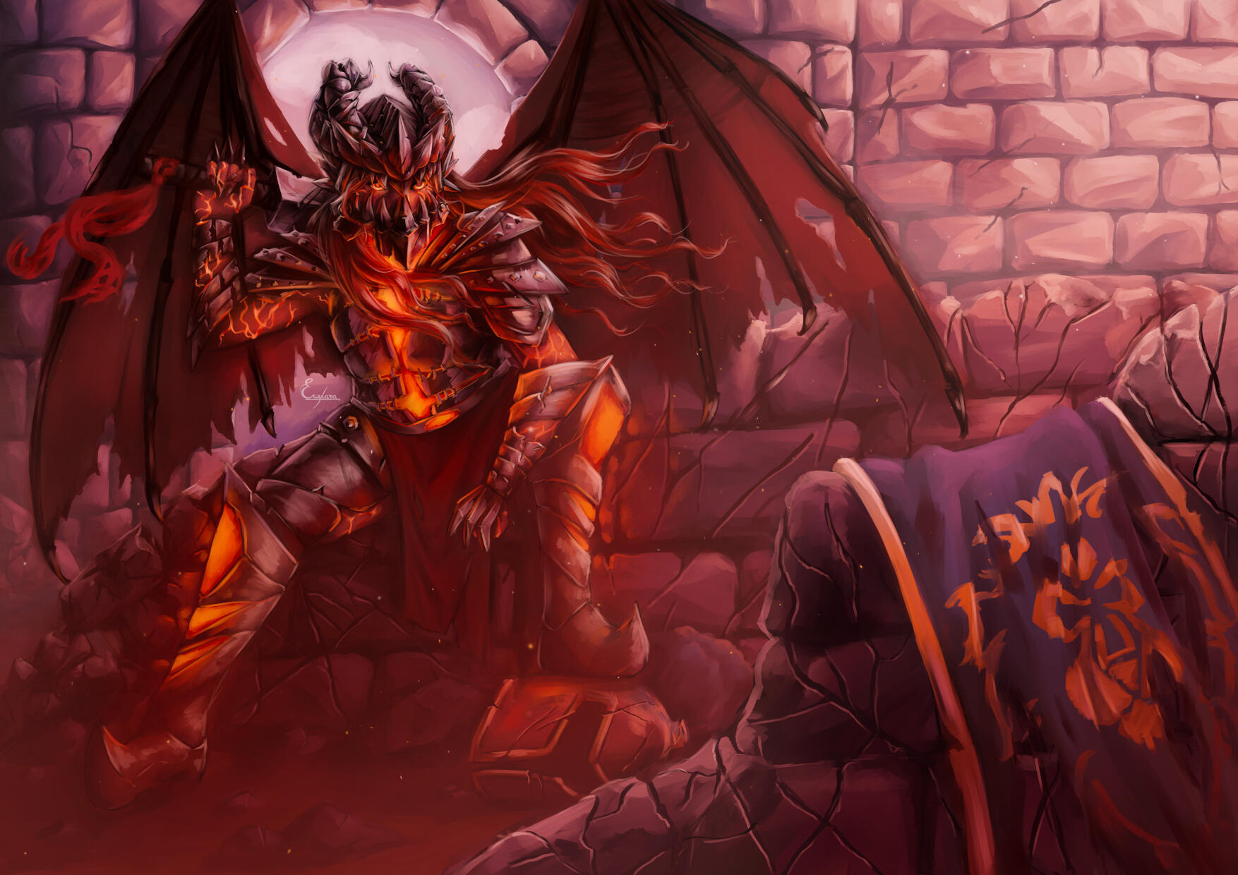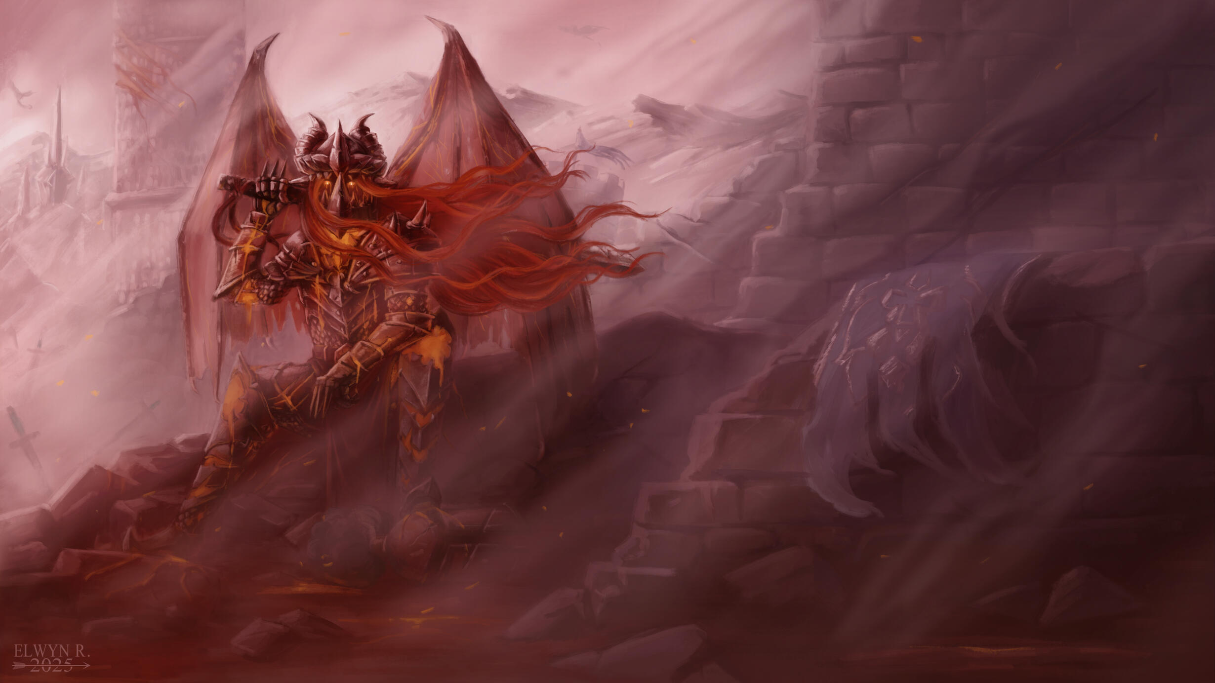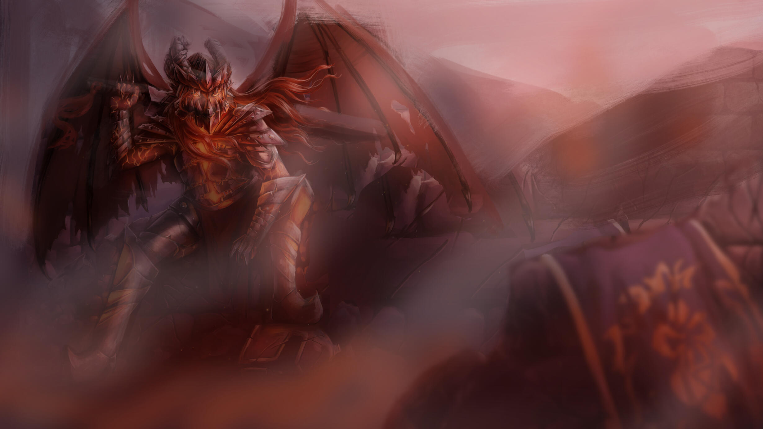 In 2024, I drew some fan art based on World of Warcraft: Cataclysm, inspired by one of my drawings from my teenage years. While this genderbend version of Deathwing is far from being canon, I loved it and wanted to revisit it and develop it further. First, I enlarged the original drawing and made some adjustments before deciding to repaint it entirely, creating this artwork.