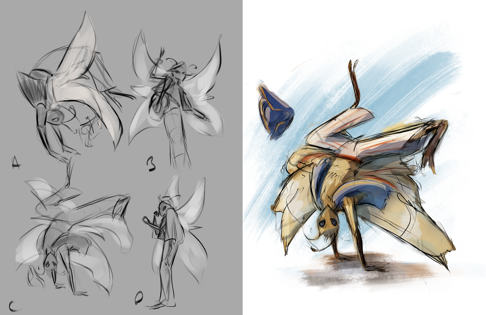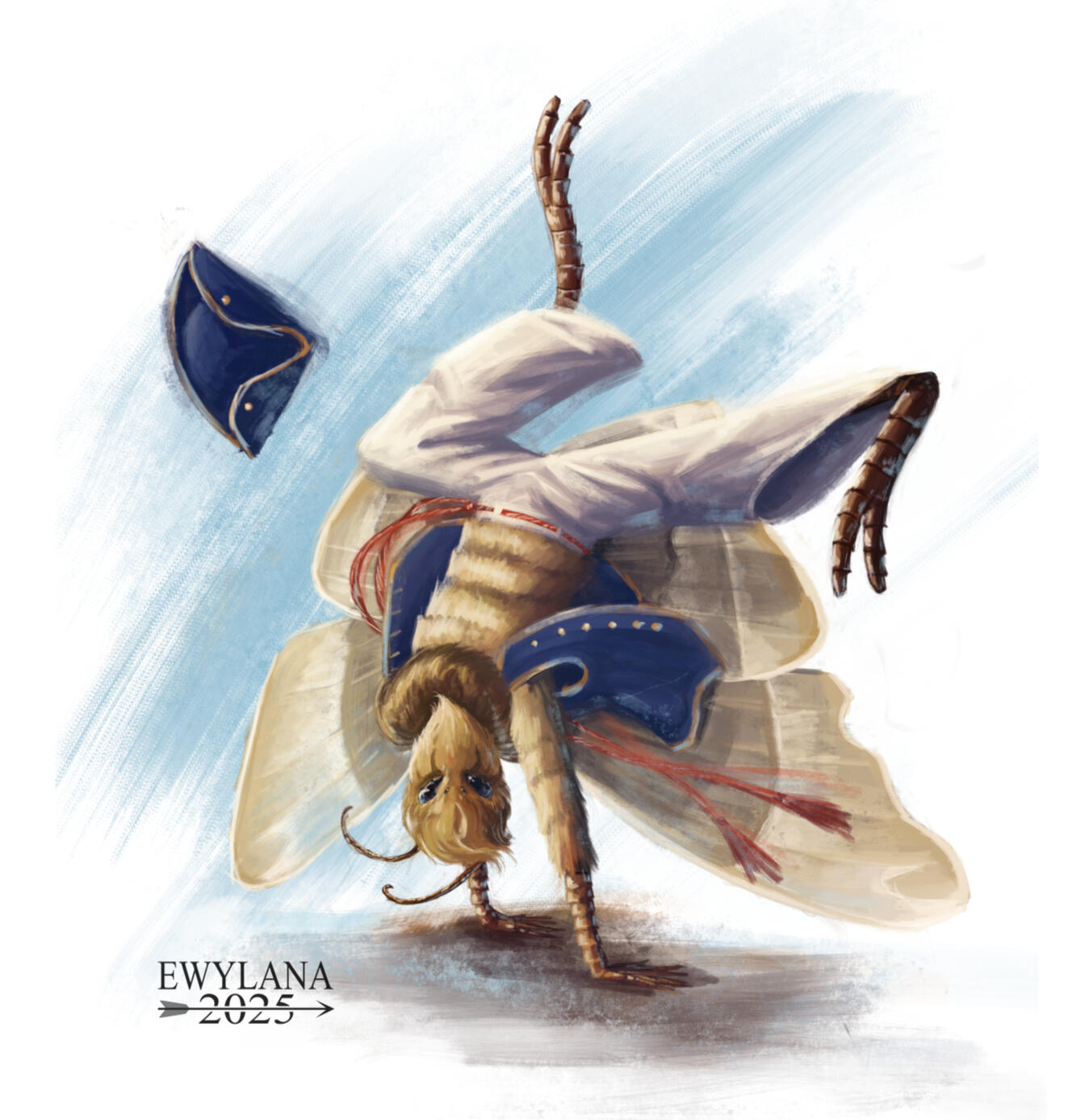 This artwork was created for a private client to depict their Wildsea TTRPG character: a Mothryn sailor who fights using capoeira.