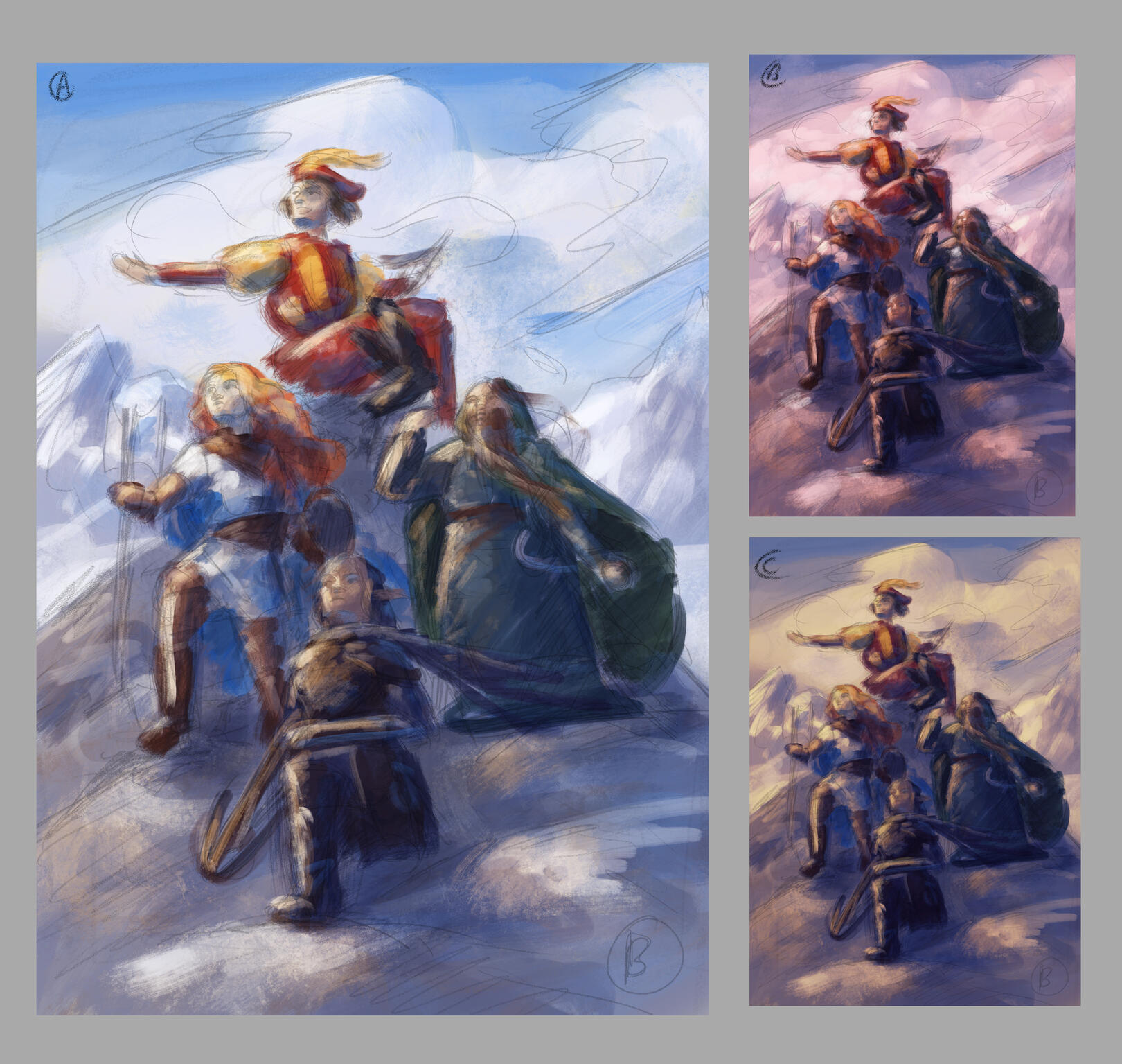 This artwork was created for a private client depicting their D&D party, in a way that could be used both as a group party and as individual portraits. I had to create most of the design of the characters.