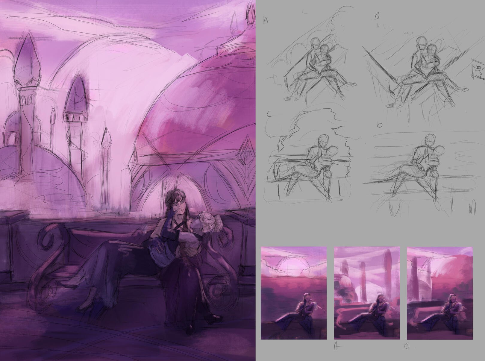 This artwork was created for a private client, depicting a tender moment between two characters from the client's upcoming novel..