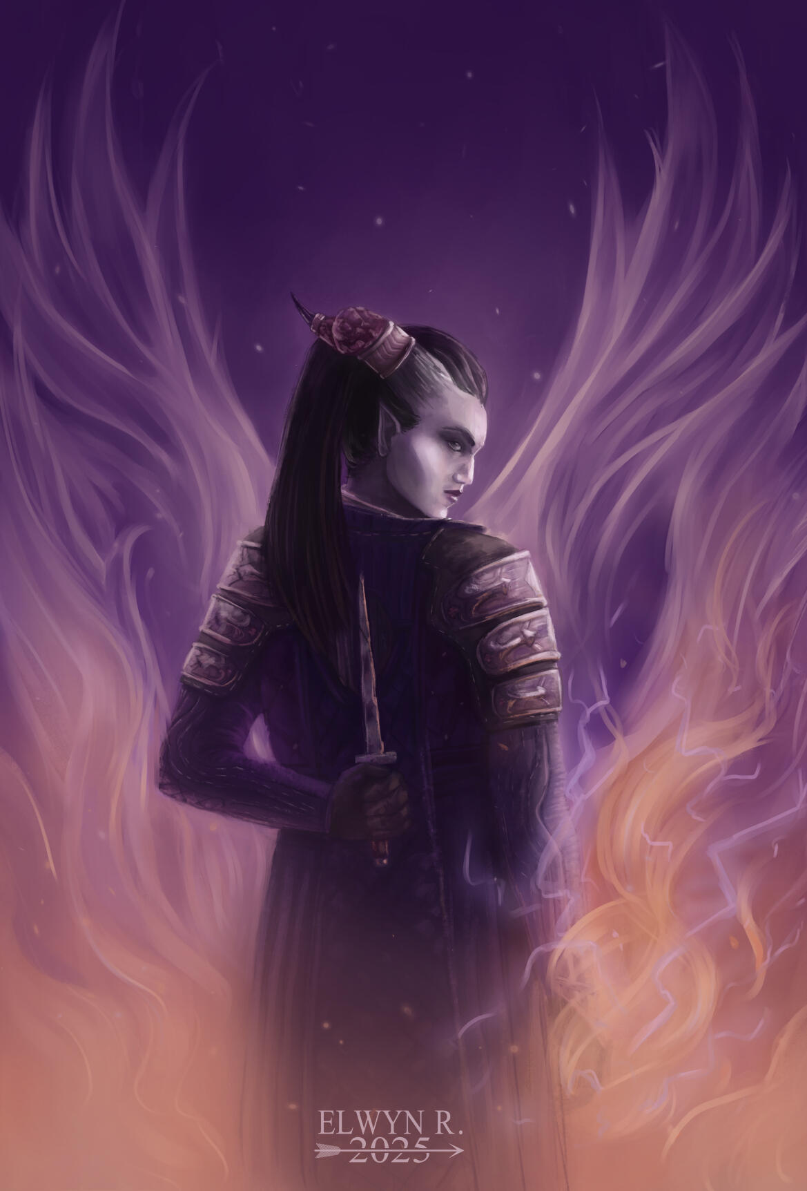 This artwork was created for a private client. It showcases their Dragon Age: Veilguard character — an Antivan Crow.