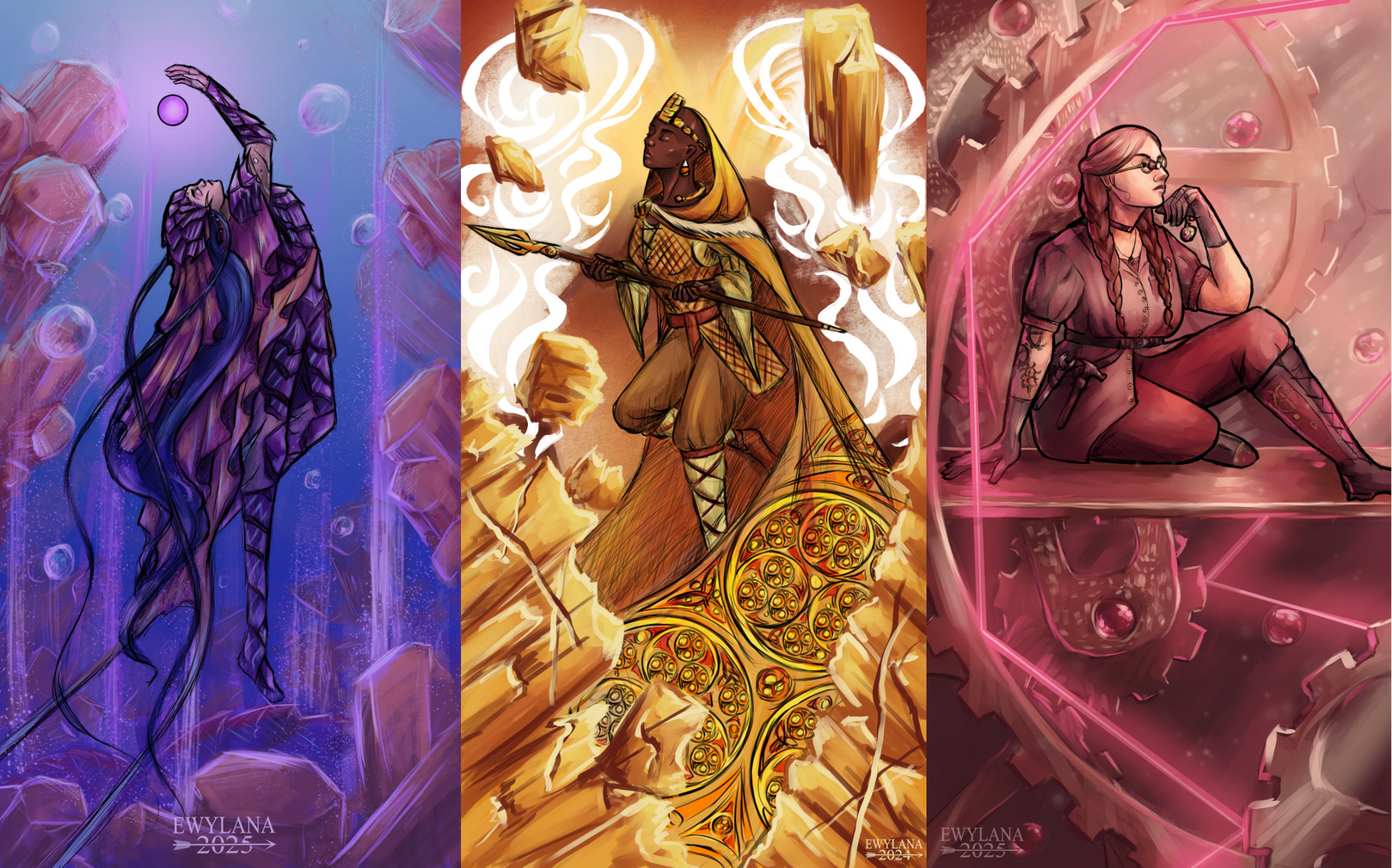 I am a freelance artist based in France working under the pseudo Elwyn Rain (previoulsy Ewylana Art). I love to draw fantasy and TTRPG illustrations. I mostly draw medieval fantasy and sometimes retrofuturistic universes, taking inspiration from my TTRPG games. My favourite subject to paint in the medieval fantasy genre is dwarves!I am also a geologist passionate about rocks and fossils, which I love to include in my drawings.I am mostly self-taught, but I participated in some of mentorship programmes under the guidance of Paul Scott Canavan, Onyrica and Indicreates, which helped me to further develop my skills.I am currently seeking freelance opportunities in the TTRPG and TGC fields as well as for book covers art, for spring and summer 2026. I have previously worked for Posidonia JDR, Posidonia Jeunesse, a couple self-published authors and multiple published fanzine.Please email me if you have any questions — I would be really happy to work with you!